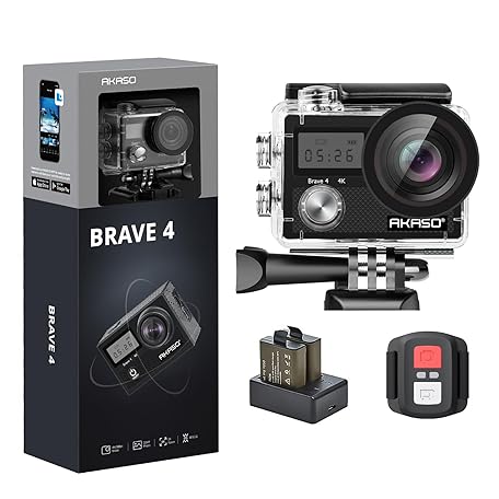 Thông tin sản phẩm AKASO Brave 4-4K Action Camera, Wearable Camera, 20 Megapixels, EIS Image Stabilization, 5x Zoom, Built-in WiFi, External Microphone Compatible, Underwater Camera, 30M Waterproof, Remote Control, Wide