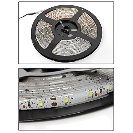 Thông tin sản phẩm AKIRARI LED Tape Light, 5M, 300 Rounds SMD3528 Chip, IP44 Waterproof, Cutable, Easy Installation, Double-Sided Tape, Cutable, No Construction Required, Tools Required, Stores, Indoors, DIY, Torchiere