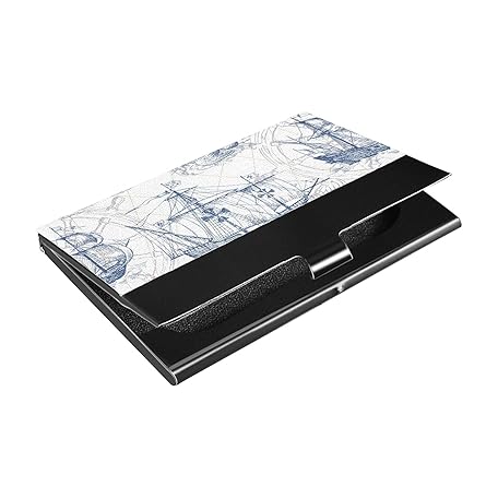 Alaza Business Card Holder, Men's, Women's, Portable, Business Card Case, Stylish, Popular, Sailing Boat, Hansen, Nautical Stainless Steel, Large Capacity, Thin, Sailboat Hansen Nautical