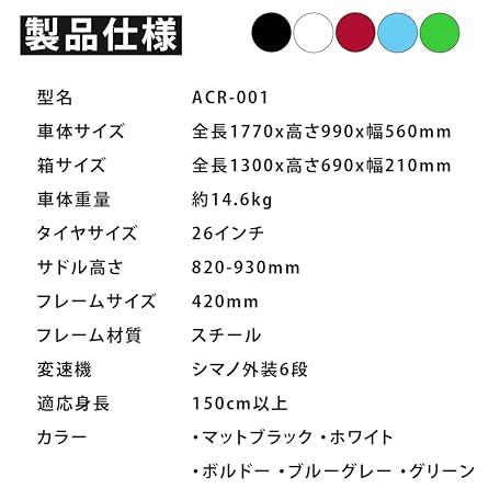 Thông tin sản phẩm Altage ACR-001 Bicycle, Hybrid Bike, 26 Inches, Shimano 6-Speed Gear