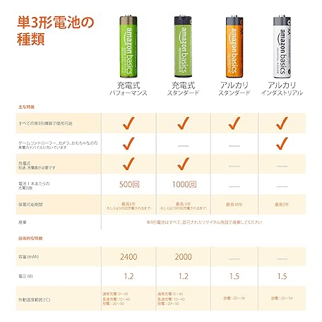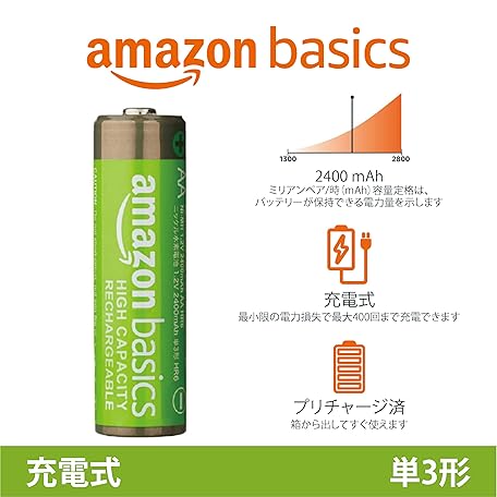 Sản phẩm Amazonベーシック 24個入り充電式単3形ニッケル水素大容量電池、2400 mAh、1.2V、最大400倍まで充電、プリチャージ済み đang được bán với giá ưu đãi là $26.3671 tại nước Nhật.