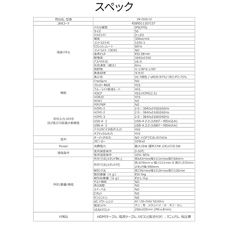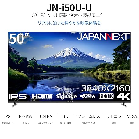 Sản phẩm 【Amazon.co.jp限定】JAPANNEXT 50インチ IPSパネル搭載 大型4K液晶モニター JN-i50U-U HDMI HDR ビデオ/音声入力端子 オプティカル端子 USB再生対応 サイネージ đang được bán với giá ưu đãi là $376.159 tại nước Nhật.
