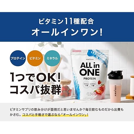 Thông tin sản phẩm Ambique All-in-One Protein, Whey, Strawberry Flavor, 11 Vitamins Blended, 4 Types of Minerals, 2.2 lbs (1 kg) (Strawberry, 2.2 lbs (1 kg) x 1 Piece)