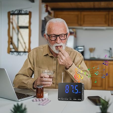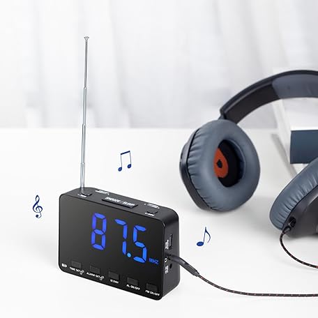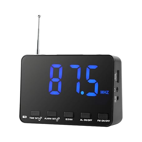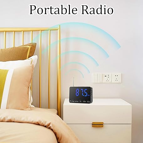• 目覚まし時計 AM/FMラジオ付き デジタル時計 アラームクロック 気象ラジオ 音量調整 12/24時間表示 LED 大画面 文字も大きくてみやすい 静音 省電力 コンパクト 小型 クロック 部屋 オフィス 防災 アウトドア 旅行に最適 12x8.5x4.7cm