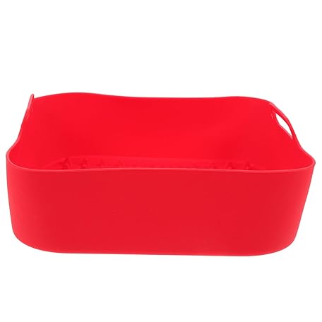 Amosfun Reusable Air Fryer Fryer Fry Kitchen Small Oven Handle Plus Nonstick Bakeware Steaming Basket Liner Titanium Fry Pan Silica Gel Red
