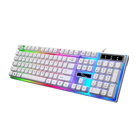 Angoily Computer Keyboard, Illuminated Keyboard, Lighted Keyboard, Wired Keyboard, Computer USB Keyboard, Wired Keyboard, 7 Colors Backlit Keyboard, White