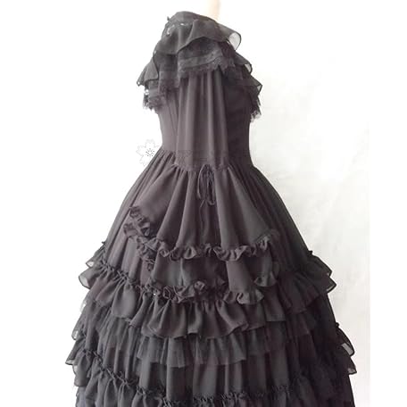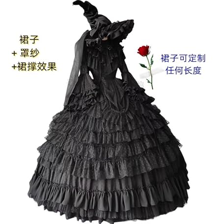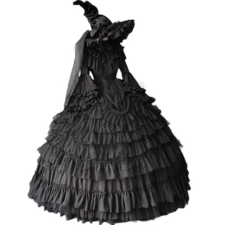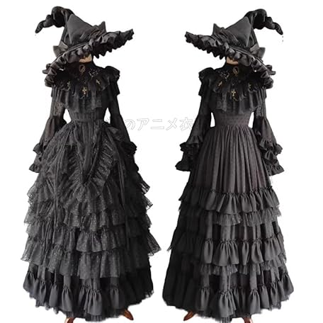 • Anime Cherry Blossom Costume, Black, Long Dress, Wedding Dress, Cute, Ruffle Sleeves, Puff Sleeves, Lolita, Cute, Lolita, Idol Clothes, Clothes, Dress, Bride, Elegant, Imperial Court, Gothic, Princess