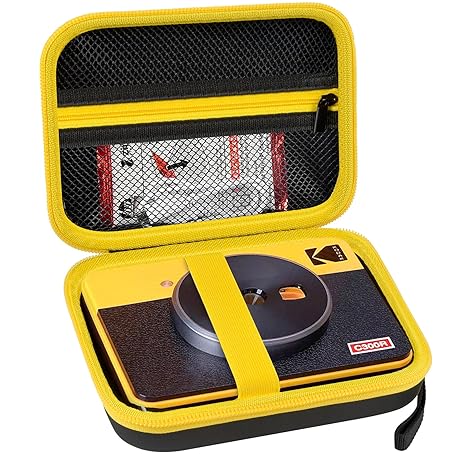 ANKHOH Print Camera Case for Kodak Mini Shot 3 Retro 4PASS Wireless Instant Camera & Photo Printer, Picture Printer Carrying Storage Bag Holder Fits for Kodak Mini 3 Retro (Black+Yellow) (Box Only)