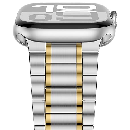 Anlinser Compatible Apple Watch Band 42mm 41mm 40mm 38mm, Men and Women 5 Chain Metal Apple Watch Band for iWatch Series 10 9 8 7 6 5 4 3 2 1 SE (Silver Gold)