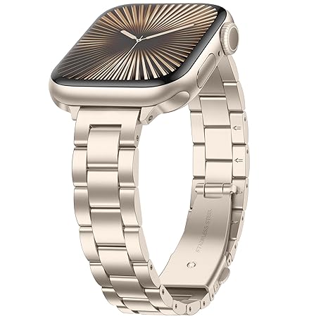 Anlinser Ultra Thin Strap~Compatible Apple Watch Band 49mm 46mm 45mm 44mm 42mm, Fashion Cute Metal Women for Apple Watch Band iWatch Ultra 2 Series 10 9 8 7 6 5 4 3 2 1 SE (Starlight)