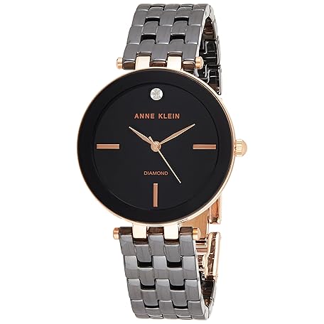 Anne Klein レディース AK/3310BKRG ダイヤモンドアクセント ローズゴールドトーン ブラックセラミックブレスレットウォッチ