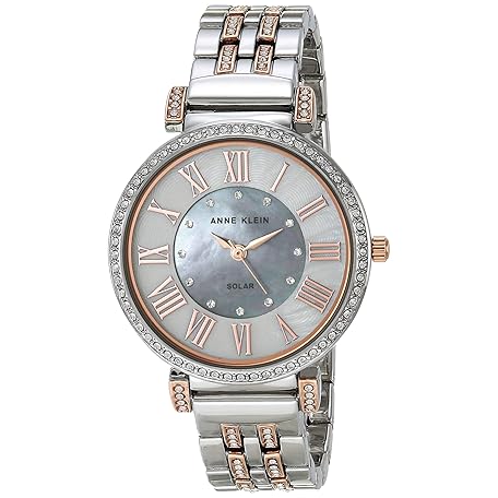 Anne Klein レディース ソーラーパワークリスタルアクセント ブレスレットウォッチ AK/3633MPRT、シルバー/ローズゴールド、AK/3633MPRT, シルバー/ローズゴールド, ブレスレット