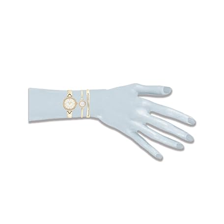 Thông tin sản phẩm Anne Klein Women's Swarovski Crystal Accented Watch and Bracelet Set, White, Gold Tone, White, Gold Tone, AK/3574WTST