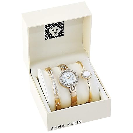 Sản phẩm Anne Klein Women's Swarovski Crystal Accented Watch and Bracelet Set, White, Gold Tone, White, Gold Tone, AK/3574WTST đang được bán với giá ưu đãi là $191.84 tại nước Nhật.