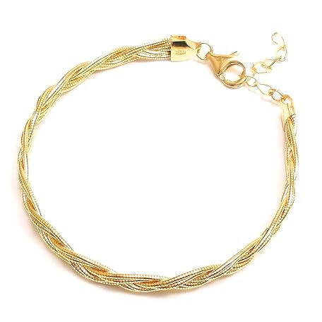 Antiere Braid Bracelet, 7.1 + 1.2 inches (18 + 3 cm), Women's, 925 Silver, 18K Gold Plated