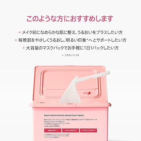 Sản phẩm ANUA(アヌア)桃ナイアシンセラムデイリーマスクパック30枚入り フェイスパック 水光肌 うるツヤ 水分保湿 キメ 角質 乾燥肌 混合肌 ディリーパック peach niacin serum daily mask pack スキンケア【公式・正規品】 đang được bán với giá ưu đãi là $16.3609 tại nước Nhật.