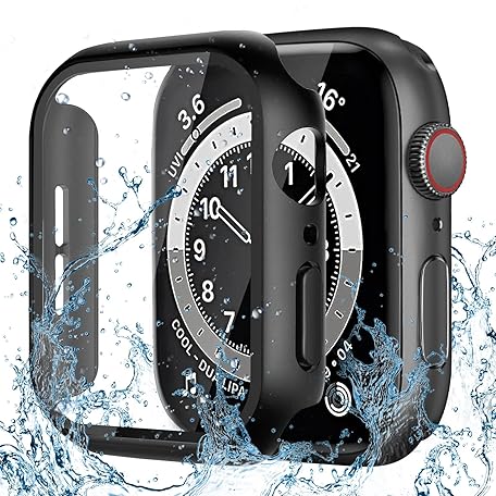 Apple Watch Case for iWatch Series 9/SE2/SE/8/7/6/5/4 44mm Ultra Thin Case Waterproof 9H Hardness Tempered Glass High Transmittance Heavy Duty Shockproof Full Protection for Apple Watch Cover