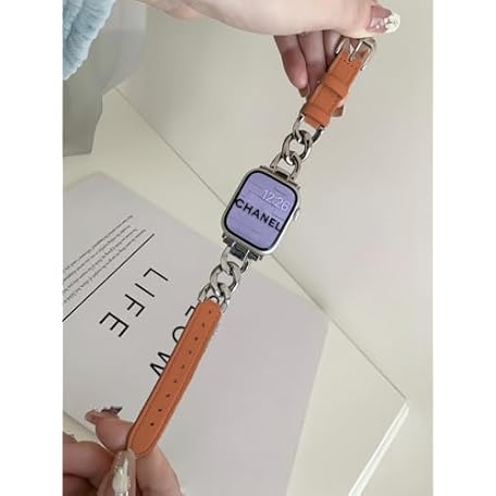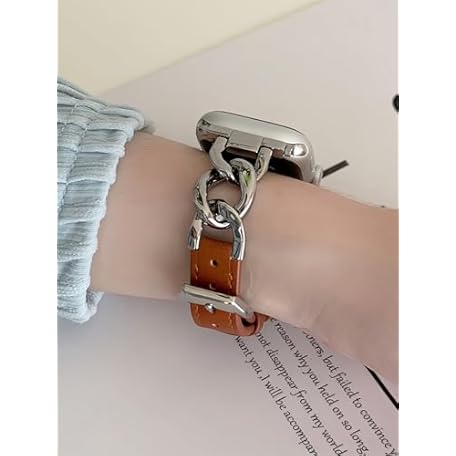 Sản phẩm Apple Watch Chain Strap Genuine Leather, No Adjustment Needed, Durable and Fashionable, Compatible with Apple Watch Series 10 9 8 7 6 5 4 3 2 1 SE 46mm 45mm 44mm 42mm 41mm 40mm 38mm (Brown, đang được bán với giá ưu đãi là $7.8589 tại nước Nhật.