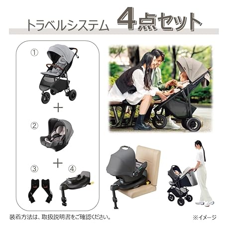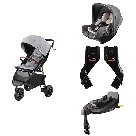 Aprica A-Shaped Stroller Smooth Precious AB (Gray) + Air Carry AB (Gray) + Smoove Exclusive Travel System Attachment + Uplica Travel System Base (4-Piece Travel System Set)