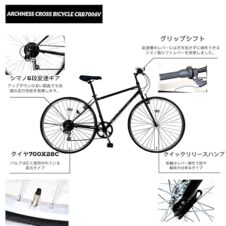 ARCHNESS CRB7006V Cross Bike Bicycle 700C 27 Inch 700 x 28C Shimano 6 Speed Derailleur Bicycle 27 Inch Cross Bike 27 Inch Chari Commuting to Work or School Commuting to School (Without Accessories,