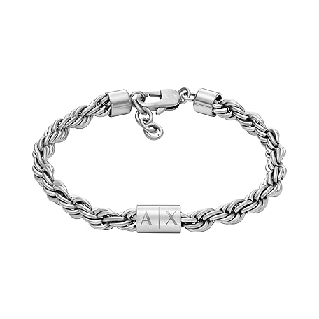 Armani Exchange ステンレススチールチェーンブレスレット, One Size, ステンレス鋼, 宝石なし。, シルバー ツイスト, AXG0123040