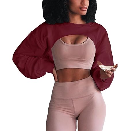 • Artfish レディース クルーネック 長袖 クロップトップ ワークアウト ジム カジュアル カットアウトルーズ クロップドスウェットシャツ