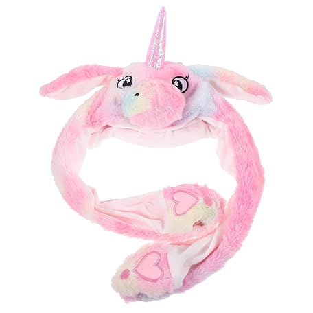 [ARTIBETTER] ユニコーンぬいぐるみ帽子 耳ジャンプ付き 動く耳キャップ パーティー コスプレ用 軽量耐久 動物帽子 写真撮影小道具