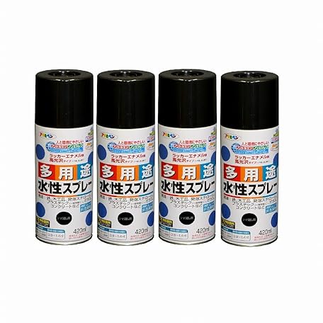 Asahipen Multi-Purpose Water-Based Spray, 14.2 fl oz (420 ml), Matte Black, Spray Box, Set of 4