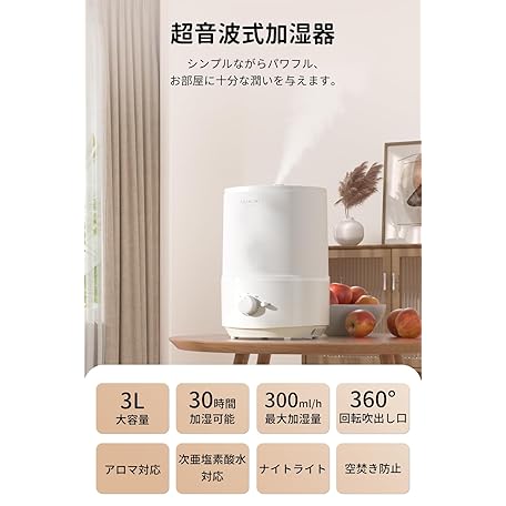 Sản phẩm ASAKUKI 加湿器 卓上 小型 アロマ対応 超音波式 大容量3L 次亜塩素酸水対応 上から給水 ナイトライト 静音 空焚き防止 お手入れ簡単 加湿量最大300ml/h 6-12畳対応 強力加湿 乾燥防止 寝室用 đang được bán với giá ưu đãi là $30.1603 tại nước Nhật.