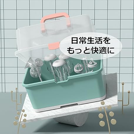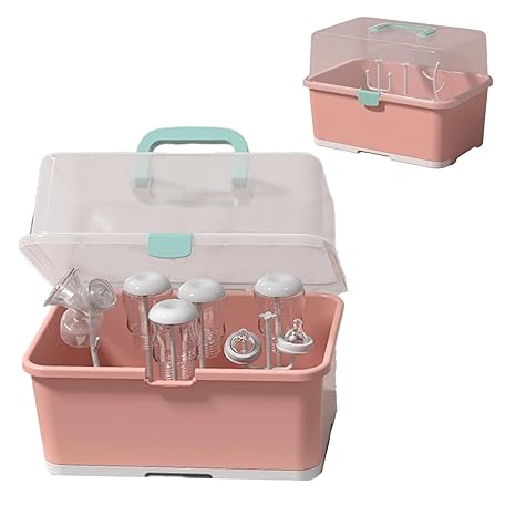 Asdays Bottle Rack, Drying Rack, Storage Box, Dust Prevention, Hygienic, Includes Cover, Dry, Portable, Large Capacity, Gift (Pink)