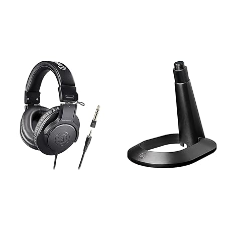 AT8703 Audio Technica ATH-M20x/1.6 Professional Monitor Headphones Wired Cable Length 5.9 ft (1.6 m) Black + AT8703 Desktop Microphone Stand Desktop Stand for Microphones, Angle Adjustment (AT2020