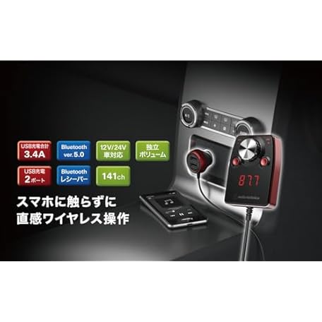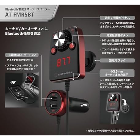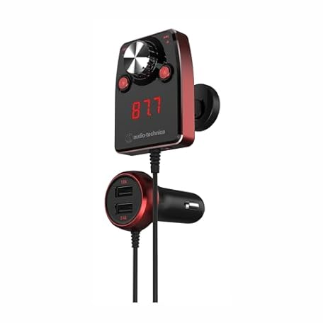 Audio-Technica AT-FMR5BT RD Bluetooth FM Transmitter, Separate 141ch Smartphone Charging, Tablet Charging, USB, Red