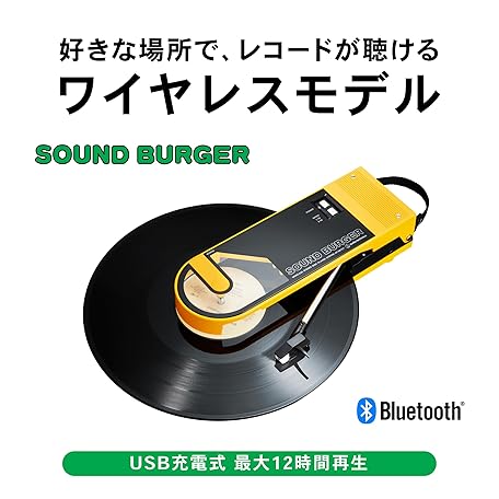 Thông tin sản phẩm Audio-Technica AT-SB727 YL Wireless Record Player, Sound Burger, Portable, Small, Lightweight, USB Charging, Bluetooth Belt Drive, Yellow