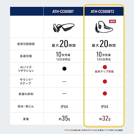 Thông tin sản phẩm Audio-Technica ATH-CC500BT2(E) Wireless Earphones, Bluetooth, Cartilage Conduction, Open-Ear Headphones, Listening, Original Stickers, Maximum Volume Up, Supports Multiple Points, Noise Reduction,
