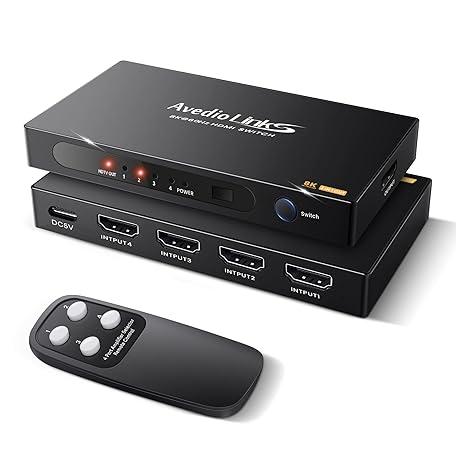 • avedio links 4x1 HDMI 2.1スイッチ 8K@60Hz、4K@120Hz 4ポートHDMIスイッチャー 自動切り替え付き HDCP 2.3 HDR10+、Dobly Vision/Atmos、PS4/5、Xbox、Fire TV Stick用リモコン付きHDMIスイッチ