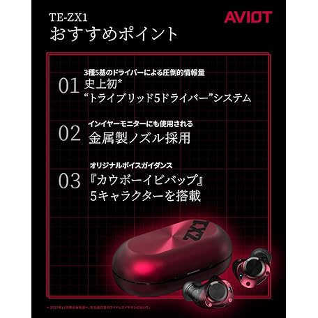 Sản phẩm AVIOT TE-ZX1 ハイブリッドアクティブノイズキャンセリング ワイヤレスイヤホン トライブリッド5ドライバー カウボーイビバップ 音声ガイダンス ハイレゾ対応 イヤホン BAドライバー 平面磁気駆動型ドライバー 金属製ノズル採用 積層造形技術使用 マルチポイント対応 最大20時間再生 IPX4防水 医療用? đang được bán với giá ưu đãi là $235.7561 tại nước Nhật.