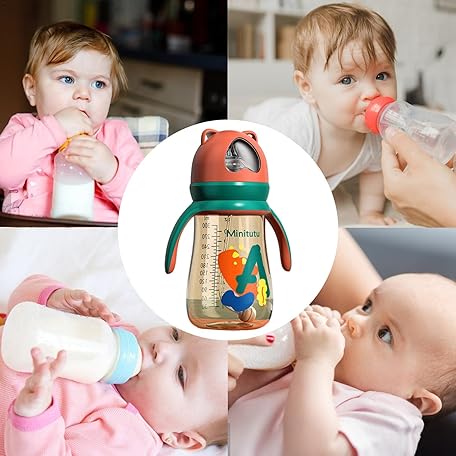 Baby Bottle Newborn Baby Feeding Bottle,Cartoon Breast Milk Bottle | Photo 300ml Soft Nipple Anti-Colic Bottle,Easy to Clean Wide Neck Design Bottle for Nursing Baby
