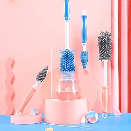 Baby Bottle Straw Brush Set, Silico, Antibacterial, Odor Resistant, 360 Degree Rotation for Nipple Cleaning, Perfect for Nursing Bottles, Rotating Bottle Brush, Silicone, For Cleaning Vases and