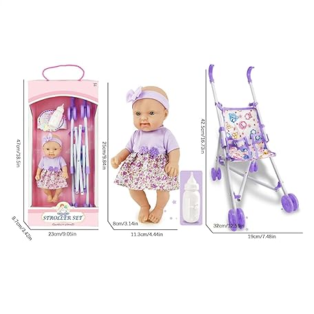 Baby Doll Stroller, Baby Doll, Baby Doll, Stroller, Sed, Children's Toy, Baby Doll, Realistic Doll, Caring Practice, Pretend Play Toy, Foldable, Push Cart, Cute, Parent-child Play, Educational Toy,