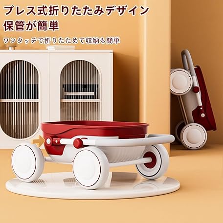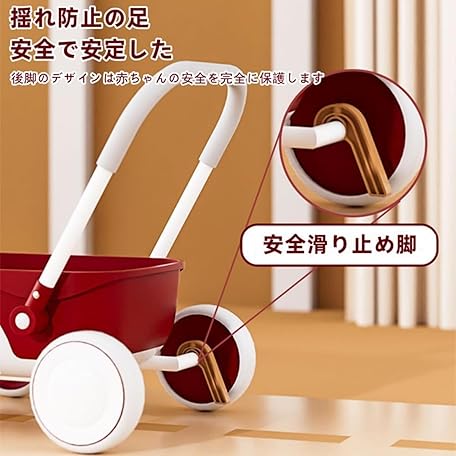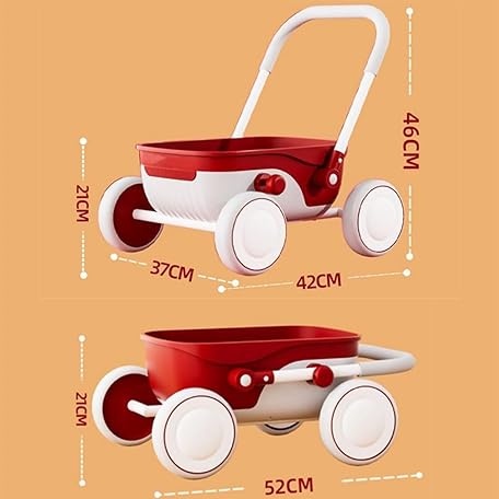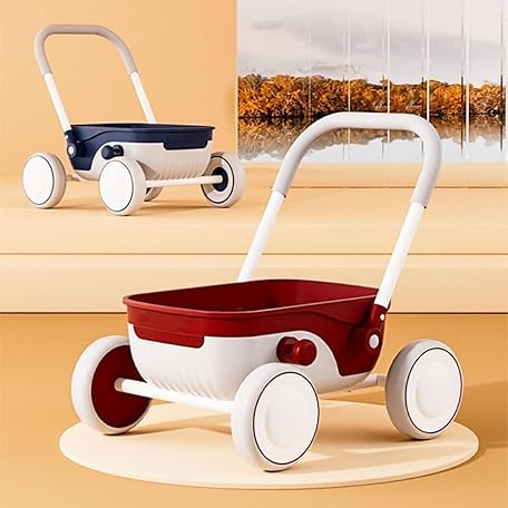 • Baby Toddler Baby Stroller Wooden Anti-Rolling Baby Stroller Walker Kids Toy Push Scooter (Red) (Cyan)