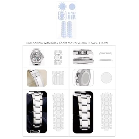 • BagArmor ロレックスヨットマスター40mm 116622、116621用保護フィルム、透明スキンフルウォッチスクリーンプロテクターボディカバーステッカー(フルボディフィルムx2)