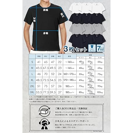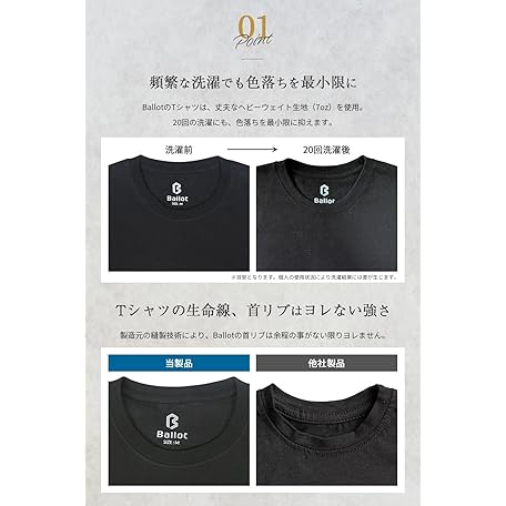 Thông tin sản phẩm BALLOT Men's Short Sleeve T-Shirt, Plain, Thick Fabric, Heavy Weight, 100% Cotton, Set of 3
