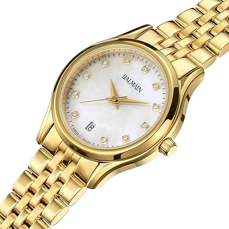 • Balmain、Lady、Beleganza、イエローPVD、スイス製、クォーツ、ホワイト、ステンレススチール316L、B83403386。