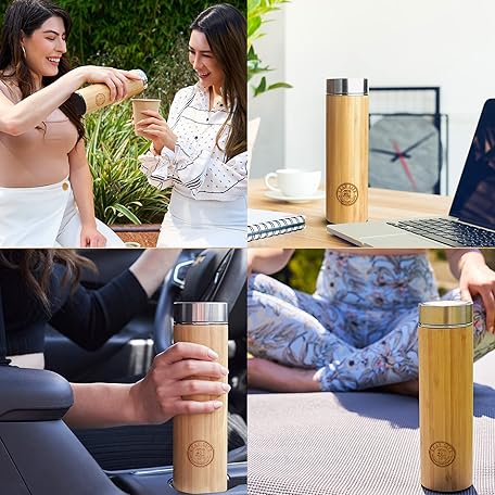 Thông tin sản phẩm Bamboo Tea Tumbler with Strainer by leaflife, BPA Free, Double Walled, Vacuum Insulated by leaflife