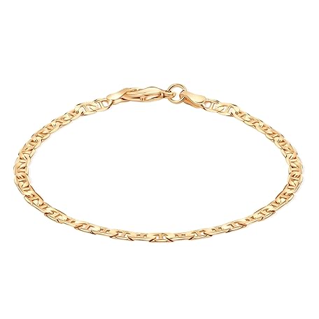 • Barzel 18Kゴールドメッキフラットマリナー/マリーナリンクチェーンブレスレット - ブラジル製