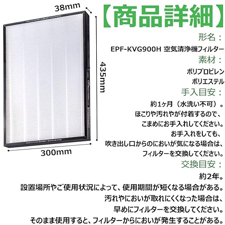 BBT EP-KVG900 Dust Collection Filter EPF-KVG900H Air Purifier Filter EP-KVG700 Air Purifier EP-LVG70 Filter, Replacement Filter, 1 Pack