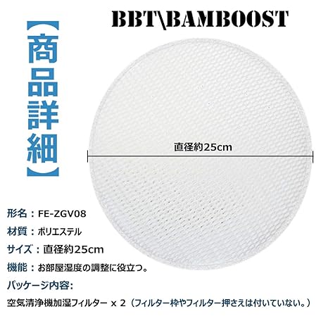 • BBT FE-ZGV08 加湿フィルター 加湿空気清浄機 F-VXH50 F-VC50XJ F-VXG50 F-VXH70 F-VXJ50 F-VXM55 F-VE40XJ F-VXG70 F-VX50E8 F-VXG80 空気清浄機 互換フィルター 2枚入り