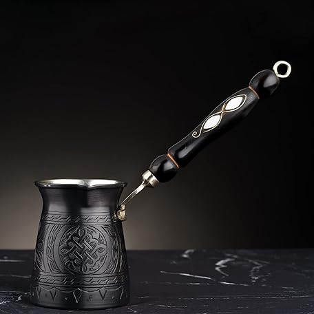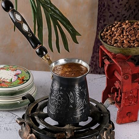 Sản phẩm BCS 12oz Copper Turkish Greek Arabic Coffee Pot with Wooden Handle (Service for 4) Cezve Ibrik Briki Stove Coffee Maker with Wood Spoon đang được bán với giá ưu đãi là $82.1424 tại nước Nhật.