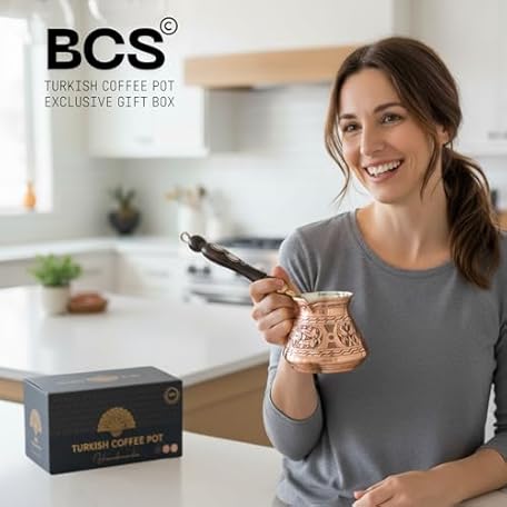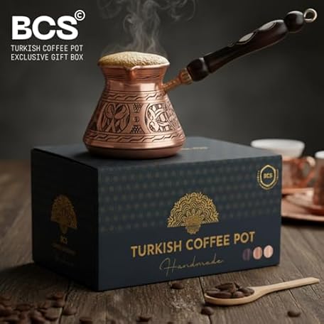 Thương hiệu BCS là cái tên nổi tiếng được rất nhiều khách hàng trên thế giới chọn lựa. Với kiểu dáng đẹp mắt, sang trọng, sản phẩm BCS Amazing Turkish Greek Arabic Copper Coffee Pot with Wooden Handle (12 fl oz for 4-5 servings) Stove Coffee Maker Cezve Ibrik Briki (with Turkish Coffee and Wooden Spoon) là sự lựa chọn hoàn hảo nếu bạn đang tìm mua một món cho riêng mình.