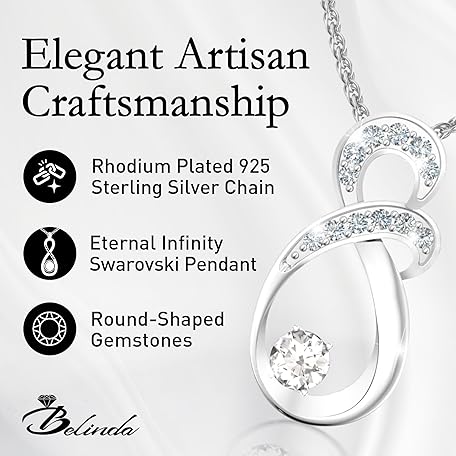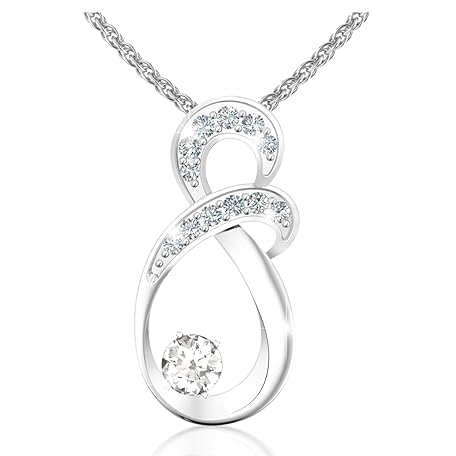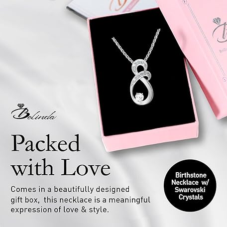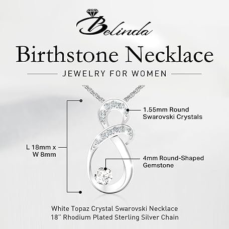Belinda Jewelz レディース 吊り下げペンダントネックレス 925スターリングシルバー スワロフスキークリスタル キラキラネックレス ラウンド誕生石ジュエリー クラシック宝石チェーン ファインジュエリーギフト ウェディングパーティー, スターリングシルバー ジェムストーン